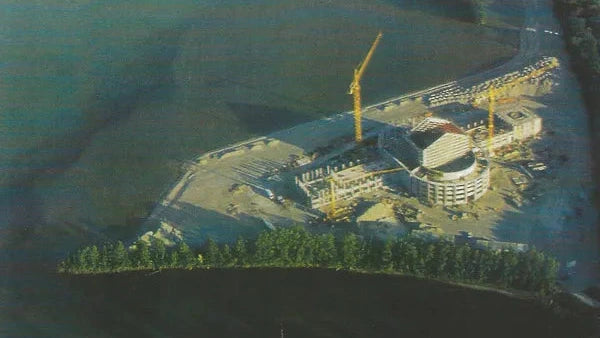 Header: Schauspielerin Anne-Catrin Wahls vor dem Glasbrunnen im Foyer des Fespielhauses Füssen (2025) mit freundlicher Genehmigung | Eindrücke aus der Bauphase und nach der Eröffnung (1999/2000)