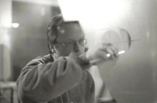 - Entwurfsskizzen, Farbproben und Materialtests legten die Bildidee im Glas fest.