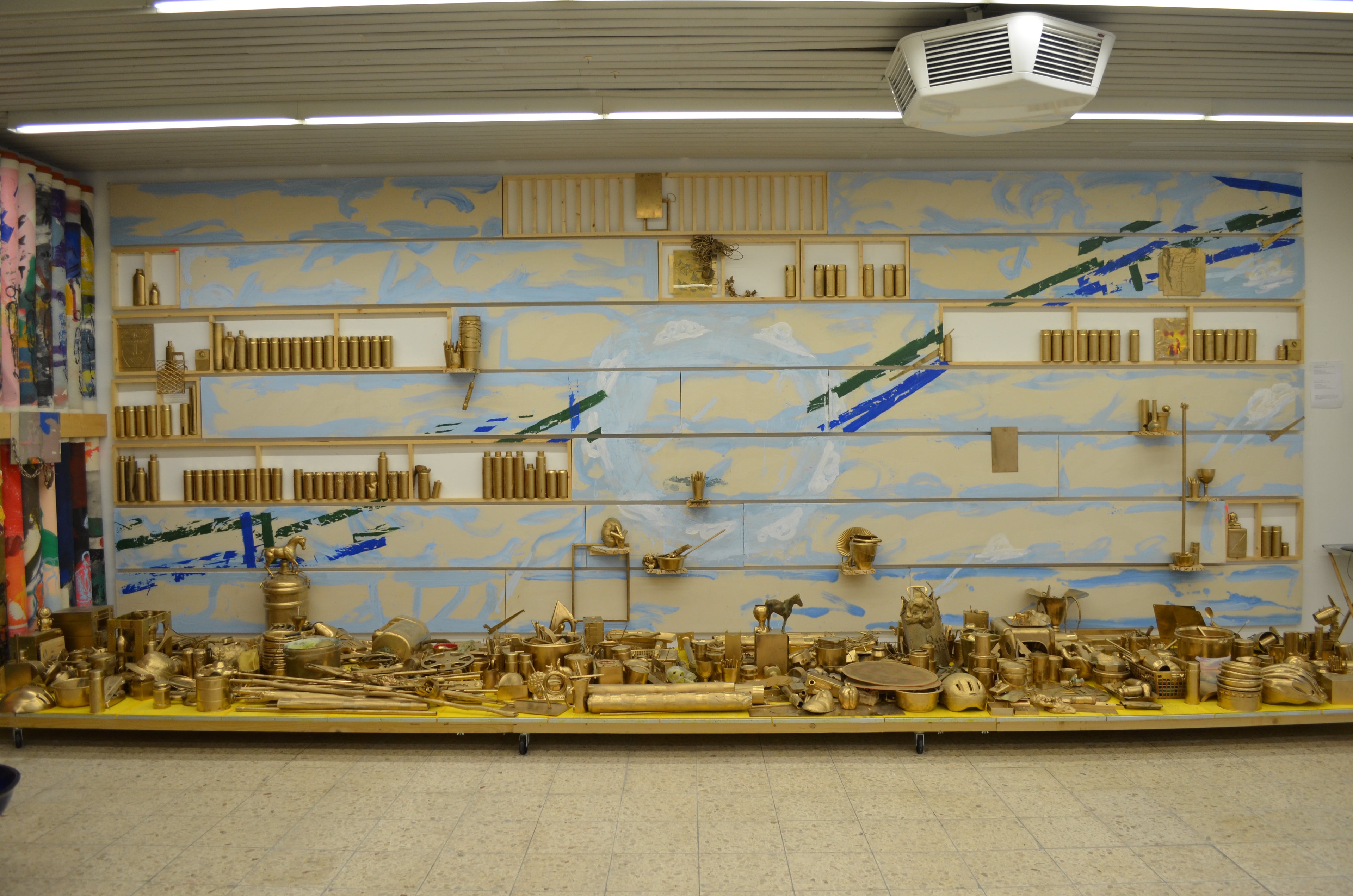 Der goldene Überzug markiert einen Akt der Dankbarkeit und des Abschieds: Die Gegenstände erhalten ein letztes Strahlen, bevor sie weitergegeben oder entsorgt werden. In der Eröffnungsrede zur Ausstellung „ZEITRÄUME“ beschreibt Dr. Roland Held, wie Blazejewski sich von einem „Berg von Objekten“ verabschiedet, indem er sie mit Goldbronze adelt und daraus eine Installation mit dem Titel „Thanks to Material“ entwickelt.